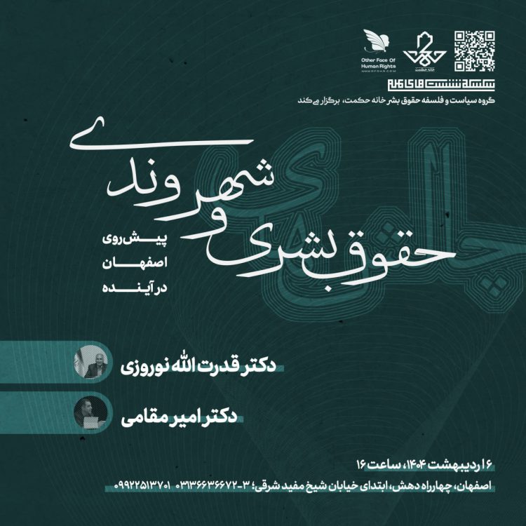 نشست تخصصی «چالش‌های حقوق بشری و حقوق شهروندی پیش‌روی اصفهان در آینده» با مشارکت گروه پژوهشی «چهره دیگر حقوق بشر» دانشگاه اصفهان و گروه «سیاست و فلسفه حقوق بشر» خانه حکمت برگزار شد و به بررسی نظام‌مند مسائل اساسی شهر اصفهان در حوزه حقوق بنیادین و حقوق شهروندی پرداخت. در این نشست، سخنرانان با تأکید بر پیوند تنگاتنگ حقوق بشر و حقوق شهروندی در سطح محلی، چالش‌هایی چون بحران آب و محیط زیست، فقر و نابرابری، تنوع‌های قومی و فرهنگی، تهدید میراث فرهنگی، وضعیت معیشتی کارگران، کاهش مشارکت اجتماعی و سیاسی، حقوق زنان، کودکان خیابانی و حقوق افراد دارای معلولیت را واکاوی کردند. همچنین بر ضرورت رویکردی جامع، مشارکتی و چندسطحی برای مواجهه با این مسائل تأکید شد؛ رویکردی که در آن، مدیریت یکپارچه منابع حیاتی، افزایش آگاهی عمومی، تقویت گفت‌وگوی اجتماعی و بین‌فرهنگی، اصلاح ساختارها و بازسازی سرمایه اجتماعی، به‌عنوان پیش‌شرط‌های دستیابی به توسعه‌ای عادلانه، پایدار و انسان‌محور برای آینده اصفهان مطرح گردید.